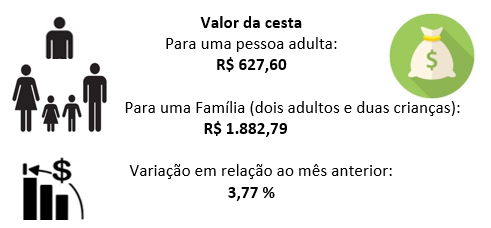 O valor da cesta básica calculada pela média destes 11 supermercados encerrou o mês com alta de 3,77% em relação ao mês anterior fechando a R$ 627,60 contra R$ R$ 604,78 no mês anterior. Em 01 de janeiro, esta mesma cesta básica custou na média R$ 636,10.